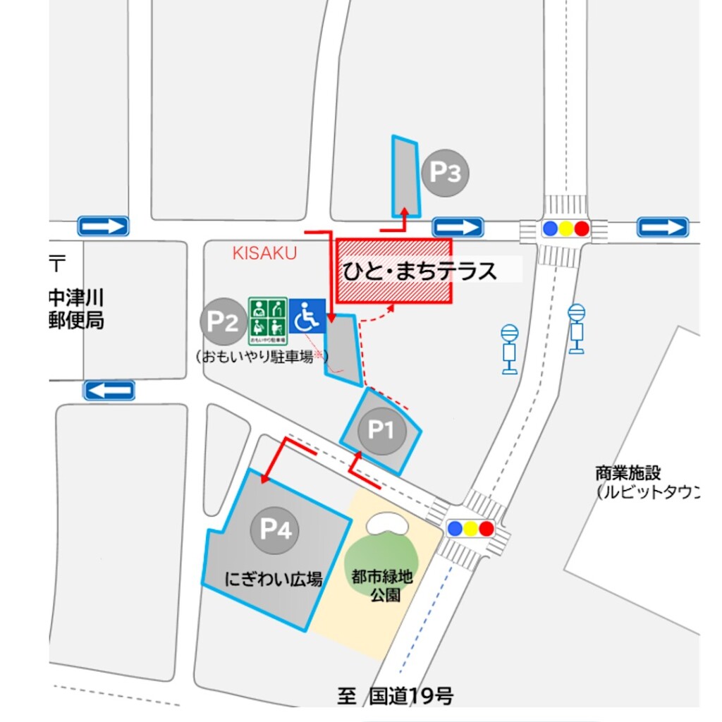 「ひと・まちテラス」さんの駐車場をおすすめしています。
