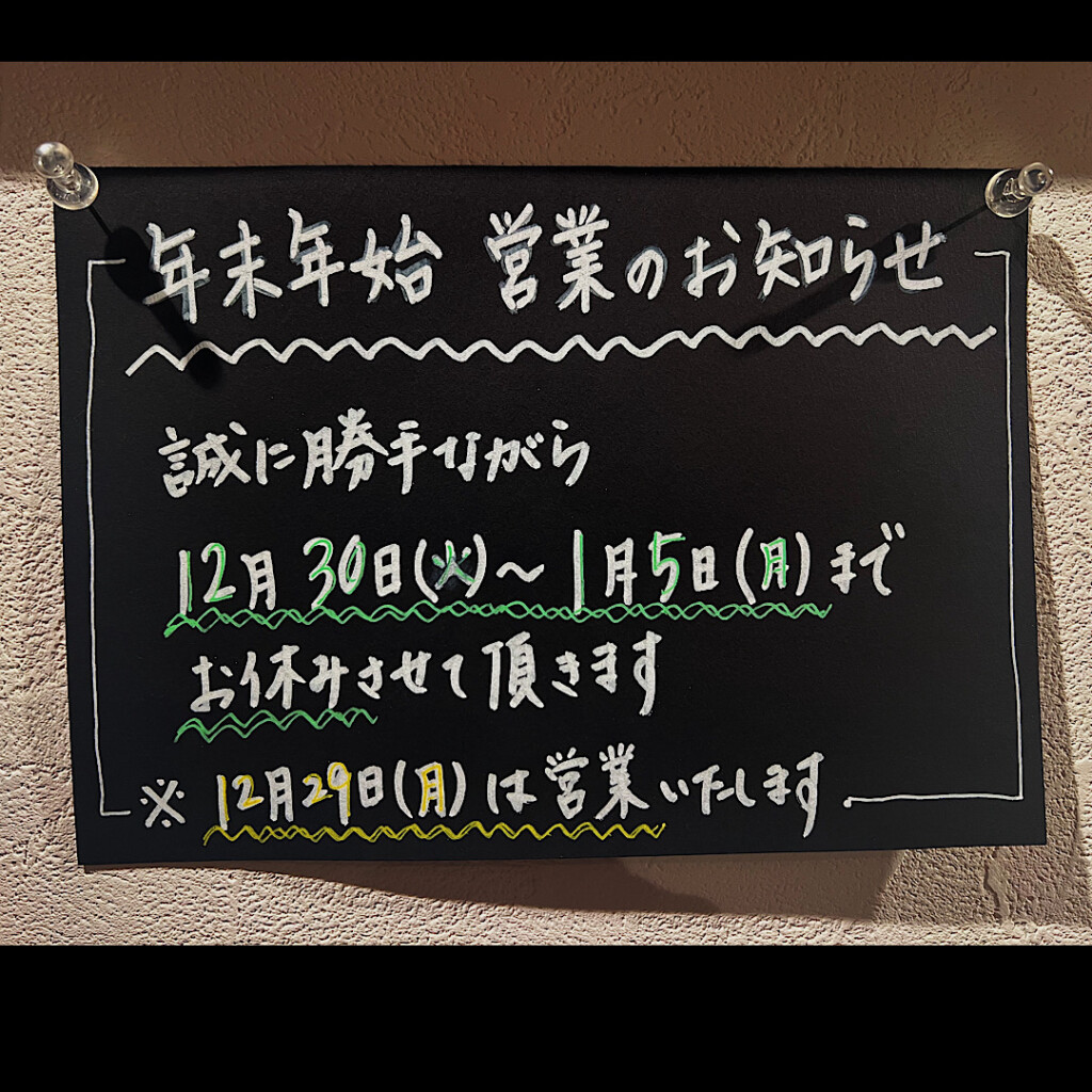 12月29日(月)が年内最終営業、