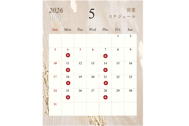 5月の営業カレンダーです。